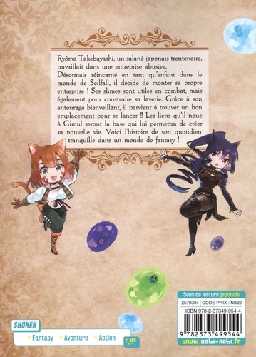 Ryôma Takebayashi, un salarié japonais trentenaire, travaillait dans une entreprise abusive. Désormais réincarné en tant qu'enfant dans le monde de Seilfall, il décide de monter sa propre entreprise ! Ses slimes sont utiles en combat, mais également pour construire sa laverie. Grâce à son entourage bienveillant, il parvient à trouver un bon emplacement pour se lancer !! Les liens qu'il noue à Gimul seront la base qui lui permettra de créer sa nouvelle vie. Voici l'histoire de son quotidien tranquille dans un monde de fantasy !