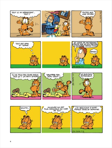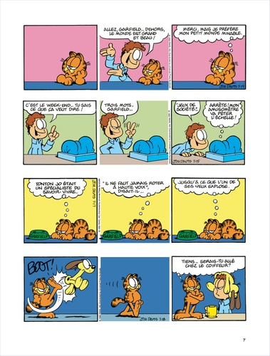Le chat le plus paresseux de l'histoire de la BD voit le jour en 1978 dans la presse quotidienne et dominicale américaine. Garfield, adulé par son maître, peut savourer tout à loisir le plaisir de ne rien faire ; gras, toujours fatigué, toujours affamé, toujours bavard, il philosophe avec humour sur sa condition féline. En n'oubliant pas de s'alimenter et de se reposer, bien sûr...