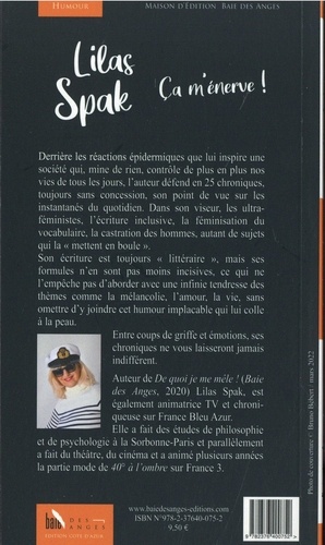 Derrière les réactions épidermiques que lui inspire une société qui, mine de rien, contrôle de plus en plus nos vies de tous les jours, l'auteur défend en 25 chroniques, toujours sans concession, son point de vue sur les instantanés du quotidien. Dans son viseur, les ultra-féministes, l'écriture inclusive, la féminisation du vocabulaire, la castration des hommes, autant de sujets qui la " mettent en boule ". Son écriture est toujours " littéraire ", mais ses formules n'en sont pas moins incisives, ce qui ne l'empêche pas d'aborder avec une infinie tendresse des thèmes comme la mélancolie, l'amour, la vie, sans omettre d'y joindre cet humour implacable qui lui colle à la peau. Entre coups de griffe et émotions, ses chroniques ne vous laisseront jamais indifférent.