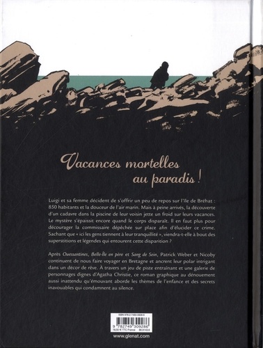 Quand le passé refait surface ! Luigi et sa femme décident de s'offrir enfin un peu de repos sur l'île de Bréhat : 850 habitants et la douceur de l'air marin. Avec un peu de chance, ils pourraient même croiser quelques vedettes puisque ce petit bout de terre est prisé par les artistes ! Mais à peine arrivés, la découverte d'un cadavre dans la piscine de leur voisin, M. Lannoy, jette un froid sur les vacances. La commissaire dépêchée sur place pour résoudre l'énigme compte bien élucider ce crime déguisé en noyade accidentelle ! Sachant que " ici les gens tiennent à leur tranquillité" viendra-t-elle à bout des superstitions et légendes qui entourent cette disparition ? Que s'est-il vraiment passé il y a 20 ans sur cette île paradisiaque et qu'a vu le petit Nathan, le premier à avoir donné l'alerte en apercevant un monsieur " flotter "dans la piscine ? Après Belle-île en père et Ouessantines, Patrick Weber et Nicoby continuent de nous faire voyager en Bretagne et ancrent leur polar intrigant dans un décor de rêve. A travers un jeu de piste entraînant et une galerie de personnages dignes d'un Agatha Christie, ce roman graphique au dénouement aussi inattendu qu'émouvant aborde le thème de l'enfance et celui du secret inavouable qui condamne au silence.