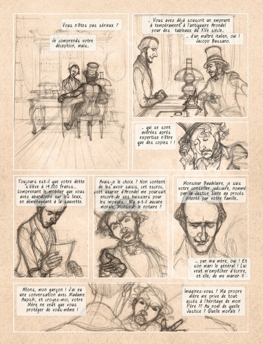 Ce numéro propose le troisième et dernier chapitre inédit de l'ouvrage réalisé par Bernard Yslaire pour "Aire Libre" : Mademoiselle Baudelaire. Les planches présentées ici en fac-similé témoignent du processus créatif de l'auteur : avant de procéder à l'encrage définitif et à la mise en couleur, Yslaire dessine la totalité de l'histoire sous la forme d'esquisses, parfois poussées, parfois suggérées, toujours narratives. C'est donc cette première étape que les Cahiers Baudelaire auront publiés périodiquement. Une invitation à plonger dans l'intimité de l'oeuvre en cours d'un créateur d'exception.