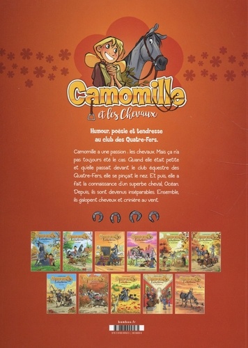 Humour, poésie et tendresse au club des Quatre-Fers. Camomille a 10 ans. Et elle a une passion : les chevaux. Mais ça n'a pas toujours été le cas. Quand elle était petite et qu'elle passait devant le club équestre des Quatre-Fers, elle se pinçait le nez. Et puis, elle a fait la connaissance d'un superbe cheval, Océan. Depuis, ils sont devenus inséparables et ensemble, ils ne galopent pas, ils volent.