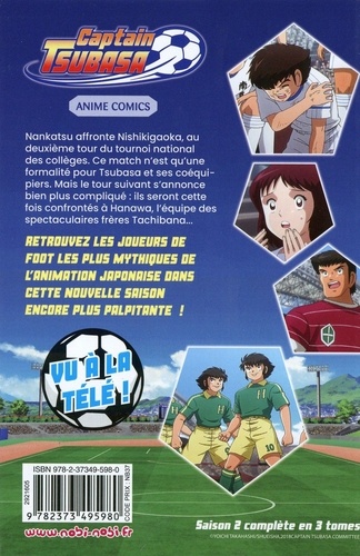 Nankatsu affronte Nishikigaoka, au deuxième tour du tournoi national des collèges. Ce match n'est qu'une formalité pour Tsubasa et ses coéquipiers. Mais le tour suivant s'annonce bien plus compliqué : ils seront cette fois confrontés à Hanawa, l'équipe des spectaculaires frères Tachibana... Saison 2 complète en 3 tomes.