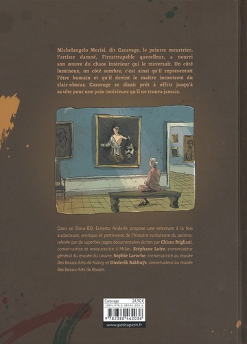 Michelangelo Merisi, dit Caravage, le peintre meurtrier, l'artiste damné, l'irrattrapable querelleur, a nourri son oeuvre du chaos intérieur qui le traversait. Un côté lumineux, un côté sombre, c'est ainsi qu'il représentait l'être humain et qu'il devint le maître incontesté du clair-obscur. Caravage se disait prêt à offrir jusqu'à sa tête pour une paix intérieure qu'il ne trouva jamais. Dans ce Docu-BD, Ernesto Anderle propose une relecture à la fois audacieuse, onirique et pertinente de l'histoire turbulente du peintre, relevée par de superbes pages documentaires écrites par Chiara Stigliani, conservatrice et restauratrice à Milan, Stéphane Loire, conservateur général du musée du Louvre, Sophie Laroche, conservatrice au musée des Beaux-Arts de Nancy et Diederik Bakhuys, conservateur au musée des Beaux-Arts de Rouen.