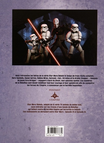 Nous retrouvons nos héros le temps de trois récits complets. Hera Syndulla, Kanan Jarrus, Sabine Wren, Garazeb «Zeb» Orrelios et le droïde Chopper - flanqués du jeune Ezra Bridger - voyagent à bord du Ghost, leur vaisseau spatial. Ces membres de la Rébellion vont devoir mobiliser tout leur courage et leur opiniâtreté afin de combattre les forces de l’Empire, à commencer par le terrible Inquisiteur.