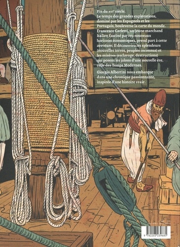 Fin du XVII ? e siècle. Le temps des grandes explorations, dominé par les Espagnols et les Portugais, bouleverse la carte du monde. Francesco Carletti, un jeune marchand italien fasciné par ces nouveaux horizons économiques, prend part à cette aventure. Il découvrira les splendeurs (nouvelles terres, peuples inconnus) et les misères (esclavage, destructions) qui posent les jalons d'une nouvelle ère, celle des Temps Modernes. Giorgio Albertini nous embarque dans une chronique passionnante, inspirée d'une histoire vraie, celle du premier marchand à effectuer le tour du monde.