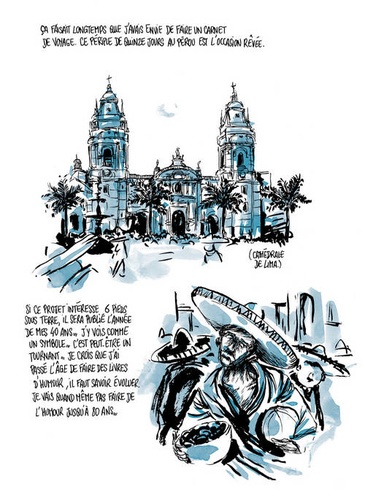 En décembre 2011, lors d'un atelier en pays Cathare, il croise la route d'une jeune plasticienne en résidence, originaire de Cuzco, qui, selon lui, " dégageait une énergie qu'on sentait jaillie de cette terre lointaine dont je ne savais rien ". Entre eux va naître une forte complicité artistique et humaine. Dès lors, il n'a qu'une obsession : se rendre dans ce pays. Ce qu'il finira par faire en juillet 2012, s'engageant dans un périple qu'il souhaite le moins préparé possible afin d'en conserver toute l'authenticité, la virginité du voyageur qui a tout à découvrir, refusant d'être parasité par les clichés et les préjugés. Hélas, depuis sa sortie initiale, vous connaissez maintenant la triste vérité, Fabcaro n'est JAMAIS ?allé au Pérou et ce carnet de voyage est un faux... Mais quel faux ! Un faux totalement hilarant qui torpille tous les poncifs du carnet de voyage et prends un plaisir sadique à démonter les impostures littéraires du genre. Fabcaro, dessine depuis l'enfance et décide de s'y consacrer pleinement à partir de 1996. Il travaille pour la presse ou l'édition, pour différentes revues de bande dessinée (Fluide Glacial, Psikopat, Jade, Tchô !, L'Echo des Savanes, CQFD... Il a publié chez des petits éditeurs comme chez des gros des ouvrages pleins d'humour ou il passe à la moulinette le comportement de ses contemporains, sans oublier de s'égratigner en premier lieu. Après " Carnet du Pérou " qui fut l'un des livres d'humour marquant de 2013, sélectionné pour les prix d'Angoulême en 2014, son dernier ouvrage chez 6 Pieds sous terre, " Zaï Zaï Zaï Zaï ", paru en 2015 est un énorme succès, tant public que critique, couronné par de nombreux prix et sélections.
