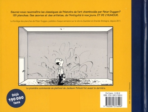 Et si Adam et Eve s'étaient rencontrés sur Internet ? Et si Ronald McDonald finançait l'oeuvre de Michel-Ange ? Et si Le Baiser de Klimt était interrompu par la sonnerie du téléphone ? Et si Dalí était adepte du selfie ? Peter Duggan joue avec humour de sa grande connaissance de l'histoire de l'art pour créer des décalages temporels surprenants et imaginer une centaine de planches hilarantes, où les oeuvres et leurs créateurs prennent vie pour dévoiler leurs névroses, leurs histoires d'amour et leurs secrets les plus inattendus. De rencontres improbables en personnages désopilants, des premières peintures rupestres au Turner Prize britannique, ce livre est une initiation originale, inédite et moderne à l'histoire de l'art, et le cadeau idéal pour tous les amateurs d'art et les fans de BD.
