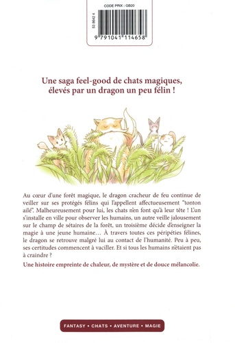 Une saga feel-good de chats magiques, élevés par un dragon un peu félin ! Au coeur d'une forêt magique, le dragon cracheur de feu continue de veiller sur ses protégés félins qui l'appellent affectueusement "tonton ailé". Malheureusement pour lui, les chats n'en font qu'à leur tête ! L'un s'installe en ville pour observer les humains, un autre veille jalousement sur le champ de sétaires de la forêt, un troisième décide d'enseigner la magie à une jeune humaine... A travers toutes ces péripéties félines, le dragon se retrouve malgré lui au contact de l'humanité. Peu à peu, ses certitudes commencent à vaciller. Et si tous les humains n'étaient pas à craindre ? Une histoire empreinte de chaleur, de mystère et de douce mélancolie.
