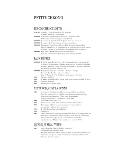 "Cavanna est-il né ? Si oui, quand ? Où ? Il a grandi. Dans quel sens ? Hauteur ? Largeur ? Il est allé à l'école. Laquelle ? Fut-il un cancre? A-t-il eu son certif ? Son bac ? Il a travaillé. A quoi ? Il a aimé. Qui ? Combien de fois ? A-t-il fait des enfants ? Les a-t-il placés à la DASS ? A rencontré Choron et plein de copains. Ont fait Hara-Kiri, puis Charlie Hebdo". Dans le style inimitable de l'écrivain des Ritals, Cavanna se raconte, et ressort de ses archives une riche iconographie pour s'illustrer: celui qui fut dessinateur avant de se révéler comme écrivain et créateur de journaux dévoile des images, photos, dessins, créations inédites dans un beau livre grand format.