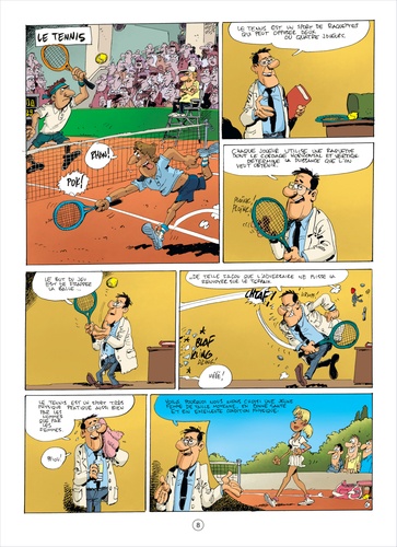 Une légende tenace prétend que le sport serait bon pour la santé. Autant le dire clairement, c'est faux. Aussi, pour éviter de prendre à la va-vite une décision qui vous mènerait tout droit à l'hôpital, l'éminent professeur Cauvin, grand spécialiste de la question, a concocté ce petit guide à lire impérativement avant de quitter son canapé ! Ce recueil de gags fait le tour des disciplines sportives : du foot au rugby, en passant par la boxe, le cyclisme ou la natation, pas un n'échappe à l'humour décapant du duo Cauvin et Bercovici.