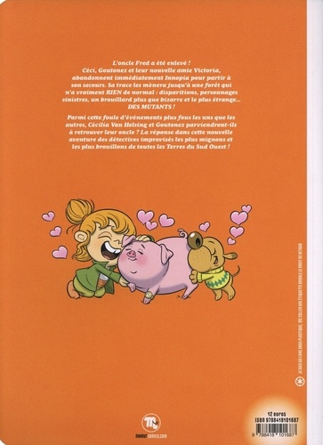 L'oncle Fred a été enlevé ! Céci, Goutonez et leur nouvelle amie Victoria, abandonnent immédiatement Innopia pour partir à son secours. Sa trace les mènera jusqu'à une forêt qui n'a vraiment RIEN de normal : disparitions, personnages sinistres, un brouillard plus que bizarre et le plus étrange... DES MUTANTS ! Parmi cette foule d'événements plus fous les uns que les autres, Cécilia Van Helsing et Goutonez parviendront-ils à retrouver leur oncle ? La réponse dans cette nouvelle aventure des détectives improvisés les plus mignons et les plus brouillons de toutes les Terres du Sud Ouest !