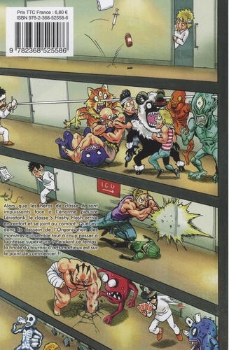 Saitama est trop puissant ; tellement puissant qu'il élimine tous les monstres les plus farouches avec un simple coup de poing. Découvrez l'histoire du plus puissant des super-héros dans ce manga qui va vous mettre K. O. !! Les héros de classe A luttent contre la pieuvre aux cent yeux, un monstre géant. Attendez, est-ce le héros de classe S Flashy Flash qui se joint au combat ? !! Infatigable, l'Association des monstres continue d'intensifier ses attaques, mais son but reste un mystère. Pendant ce temps, le tournoi d'arts martiaux atteint les demi-finales !