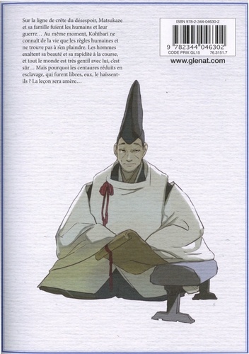 Sur la ligne de crête du désespoir, Matsukaze et sa famille fuient les humains et leur guerre... Au même moment, Kohibari ne connaît de la vie que les règles humaines et ne trouve pas à s'en plaindre. Les hommes exaltent sa beauté et sa rapidité à la course, et tout le monde est très gentil avec lui, c'est sûr... Mais pourquoi les centaures réduits en esclavage, qui furent libres, eux, le haïssent-ils ? La leçon sera amère...
