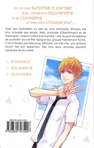 Je me suis surprise à penser que j'aimerais apprendre à te connaître un peu plus chaque jour... Avec son implication au sein du club d'entraide, Shinobu est plus occupée que jamais. Mais, entourée d'Okachimachi et de Hakamada - chacun rustre à sa manière - elle ne peut s'empêcher de souhaiter qu'une fille rejoigne leur groupe fraîchement formé. Il ne lui faudra pas beaucoup attendre, car très vite, une certaine Ayumi fait son apparition. Dès lors, leurs activités peuvent reprendre de plus belle.