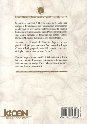 La conclusion tant attendue du manga qui lève le voile sur l'un des personnages les plus fascinants de l'Histoire... Tout Pise est en effervescence : Giovanni de Médicis s'apprête à passer son grand oral, ultime étape qui le sépare de la fin de ses études et surtout de son accession au rang de cardinal... Mais sa réussite n'aura pas seulement des conséquences politiques. A la suggestion de Cesare, Angelo se prépare à partir pour Florence, où il est destiné à devenir le nouvel homme de confiance de Son Excellence. L'avenir des Borgia, des Médicis et de la papauté même repose désormais sur les épaules de Giovanni ! Fuyumi Soryo lève le voile sur le destin hors du commun de l'énigmatique Cesare Borgia dans un manga d'une richesse historique rare, tout simplement passionnant.