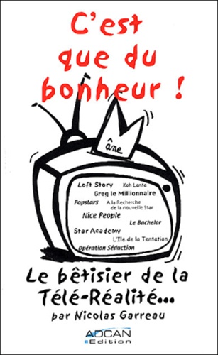 Nicolas barreau est un drôle de type : ingénieur en aéronautique, créateur d'une start-up disparue dans l'éclatement de la "bulle Internet", il a aussi été candidat aux castings de Loft Story et de Star Academy. Passionné par les émissions de Télé-Réalité, il les regarde avec tendresse, mais lucidité. Ouvrez ces pages et riez des petites maladresses, grosses bêtises et vraies énormités des candidats de Star Academy (saisons 1, 2 et 3), Loft Story (saisons 1 et 2), Popstars (saisons 1, 2 et 3), Koh Lanta (saisons 1, 2 et 3), A la recherche de la nouvelle star, Nice People, Greg le millionnaire, Le Bachelor, L'île de la tentation (saisons 1 et 2), Opération séduction (saisons 1 et 2). Vous aimez ta tété-Réalité ? Vous allez adorer ce livre. Vous détestez la télé-réatité. Vous allez aussi adorer ce livre, parce que c'est vraiment que du bonheur.