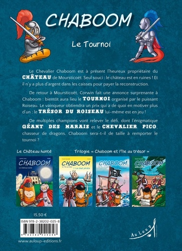Le Chevalier Chaboom est à présent l'heureux propriétaire du château de Moursticoët. Seul souci : le château est en ruines ! Et il n'y a plus d'argent dans les caisses pour payer la reconstruction. De retour à Moursticoët, Corwin fait une annonce surprenante à Chaboom : bientôt aura lieu le tournoi organisé par le puissant Roiseau. Le vainqueur obtiendra un prix qui a de quoi en motiver plus d'un : le trésor du Roiseau lui-même est en jeu ! De multiples champions vont relever le défi, dont l'énigmatique Géant des Marais et le chevalier Pico, chasseur de dragons. Chaboom sera-t-il de taille à remporter le tournoi ?