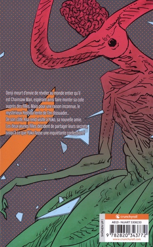 Denji meurt d'envie de révéler au monde entier qu'il est Chainsaw Man, espérant ainsi faire monter sa cote auprès des filles. Mais pour une raison inconnue, le mystérieux Yoshida tente de l'en dissuader... De son côté, Asa rend visite à Yûko, sa nouvelle amie. Les deux jeunes filles décident de partager leurs secrets, jusqu'à ce que Yûko fasse une inquiétante confession !
