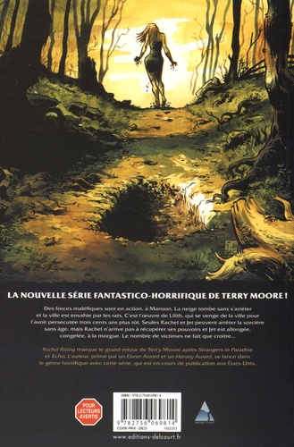 Des forces maléfiques sont en action, à Manson. La neige tombe sans s'arrêter et la ville est envahie par les rats. C'est l'oeuvre de Lilith, qui se venge de la ville pour l'avoir persécutée trois cents ans plus tôt. Seules Rachel et Jet peuvent arrêter la sorcière sans âge, mais Rachel n'arrive pas à récupérer ses pouvoirs et Jet est allongée, congelée, à la morgue. Le nombre de victimes ne fait que croître... Rachel Rising marque le grand retour de Terry Moore après Strangers in Paradise et Echo. L'auteur, primé par un Eisner Award et un Harvey Award, se lance dans le genre horritique avec cette série, qui est en cours de publication aux Etats-Unis.