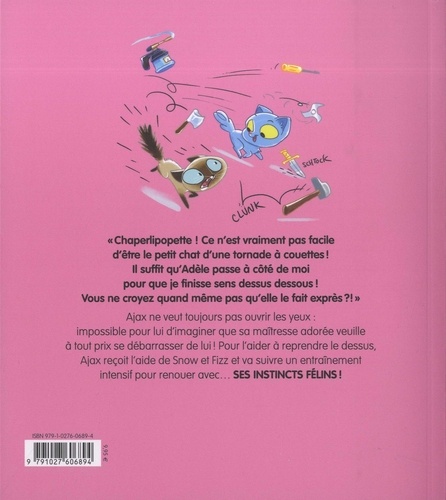 "Chaperlipopette ! Ce n'est vraiment pas facile d'être le petit chat d'une tornade à couettes ! Il suffit qu'Adèle passe à côté de moi pour que je finisse sens dessus-dessous ! Vous ne croyez quand même pas qu'elle le fait exprès ? ! " Ajax ne veut toujours pas ouvrir les yeux : impossible pour lui d'imaginer un seul instant que sa maîtresse adorée veuille à tout prix se débarrasser de lui ! Pour l'aider à reprendre le dessus, Ajax reçoit l'aide de Snow et Fizz et va suivre un entraînement intensif pour renouer avec ses instincts félins !