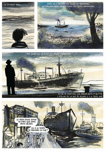 Charles Berberian, de son crayon, raconte ce moment clé dans la carrière de cette icône du design. Dans un carnet en fin d'ouvrage, son entretien avec Pernette Perriand, fille de Charlotte, apporte un nouvel éclairage sur la vie de cette artiste. Juin 1940, à bord du Hakusan Maru, Charlotte Perriand quitte la France. Endormie dans sa cabine, elle fait un cauchemar. Le Corbusier, sous les traits d'un corbeau, lui fait des reproches : "Tu auras tout le temps de méditer le mal que tu m'as fait". En route vers le Japon, cette architecte avant-gardiste et non conventionnelle va vivre une période fondamentale dans sa vie. L'immersion dans la culture et les traditions nippones sera pour elle une véritable révélation. Cette expérience lui permettra de développer sa vision de l'architecture d'intérieur : réformatrice, alliant tradition et modernité, adaptée au confort et à la vie moderne.