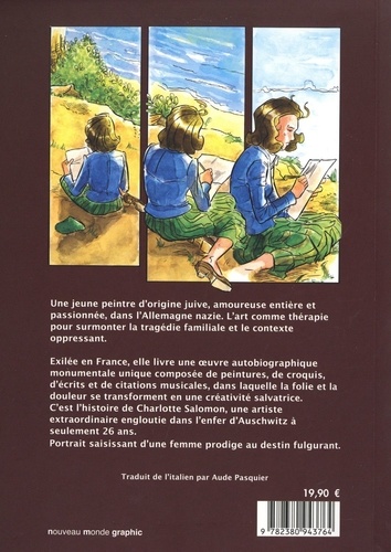 Harlotte Salomon (née à Berlin, 16/04/17 - morte à Auschwitz, 10/10/43) est une jeune artiste juive issue d'une famille prospère dont la mère s'est suicidée alors qu'elle n'avait que neuf ans. Elle fréquente l'école des arts purs et appliqués jusqu'en 1938, date à laquelle la montée de l'antisémitisme la pousse à s'enfuir dans le sud de la France pour vivre avec ses grands-parents. En 1941, vivant désormais seule, elle commence à peindre ce qui deviendra l'oeuvre de sa vie : plus de 1000 gouaches à caractère autobiographique. Ses séquences, présentées comme des fragments de film, sont parsemées de mots mais aussi de suggestions musicales contemporaines qui en font le script de tout une comédie musicale, des années avant que le genre soit à la mode. En 1943, elle confie son oeuvre au médecin local dans une grande valise avec le souhait qu'il "garde ceci en sécurité, c'est toute ma vie". En septembre de la même année, elle épouse un autre réfugié juif allemand, Alexander Nagler. Tous deux sont arrêtés et elle est transportée à Auschwitz alors qu'elle est enceinte de cinq mois. Elle ne reviendra pas... Gian Marco De Francisco est architecte, dessinateur et illustrateur basé à Tarante. Il a publié plusieurs romans graphiques. Il est le cofondateur de l'école de bande dessinée Grafite située à Tarente, Bari et Lecce. Il a d'ailleurs créé le premier centre régional d'apprentissage de la bande dessinée dans les Pouilles et continue d'en être le coordinateur. Ilaria Ferramosca est scénariste et auteur. Elle a réalisé des scénarios pour les éditeurs BeccoGiallo, Tunué, 001 Edizioni et Edizioni Voilie. Elle a été parmi les finalistes du prix national Italo Calvino (XXVe édition). Elle enseigne l'écriture de scénarios dans les locaux de Lecce et de Tarente de l'école de bande dessinée Grafite, où elle dirige également le cours de formation pour les professeurs.