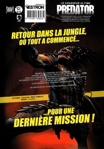 Ultime chapitre de la saga Predator : Chasseurs. Retour dans la jungle avec un personnage qui ramène cet album aux origines des comics Predator. Raphael Herrera était trafiquant de drogue avant qu'un monstre extraterrestre ne change son destin. Des années plus tard, il découvre que des membres de son ancien cartel ont été retrouvés dépecés d'une manière qu'il reconnait immédiatement... un Predator est de retour en Amérique Centrale.