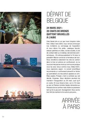 Malgré un report pour cause de covid-19, l'expo Le Chat déambule a bien eu lieu en 2021. Vingt sculptures monumentales du Chat ont été exposées à Paris et à Bordeaux et voyageront ensuite dans une dizaine de villes avant de se poser à Bruxelles à l'occasion de l'inauguration du Musée du Chat et du dessin d'humour. Chaque pièce mettra en scène le célèbre félin dans différentes scènes humoristico-poético-surréalistes. L'idée de cette exposition a germé dans l'esprit de Philippe Geluck alors qu'il travaillait sur le projet du Musée : Si Botero l'a fait, pourquoi pas moi ? Ses personnages sont gros, Le Chat l'est aussi ! Cette nouvelle édition, sous nouvelle couverture, est enrichie d'un cahier supplémentaire de 16 pages et de photos en situation réelle.
