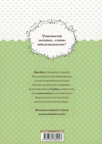 Hong Seol est étudiante a l'université. Tout juste revenue dune année sabbatique, elle doit se concentrer sur ses études. Pourtant, quelque chose la tourmente... Elle est persuadée que Yu Jeong, la star de la fac, est un manipulateur qui cache bien son jeu ! Alors quelle fait tout pour l'éviter, elle n'est pas au bout de ses surprises... Découvrez le webcomic à l'origine du drama éponyme à succès !