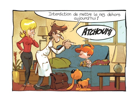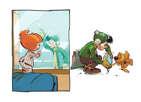 Il neige ! P'tit Boule aimerait beaucoup aller jouer dehors avec Bill, mais il est malade. Aaaatchoum !