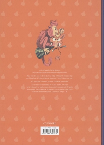 " SACHA ET TOMCROUZ ", UNE SERIE BD D'AVENTURE FANTASTIQUE QUI PROPOSE DE CAPTIVANTS VOYAGES A TRAVERS LE TEMPS. Sacha Bazarec vit seul avec sa mère, antiquaire. Pour ses dix ans, il rêvait d'un rat, mais elle lui a offert un chihuahua qu'il a baptisé Tomcrouz. Depuis que ce dernier a léché une étrange gelée dans le bureau du père disparu de Sacha, un phénomène incroyable se produit : à chaque éternuement sur un objet ancien, ils sont projetés à son époque. Ni une ni deux, Sacha fait ses conclusions, et si son père n'était pas mort ? Et si tout était lié ? ... C'est le jour J, Sacha et sa classe visitent leur futur collège. Mais son objectif, c'est la fête de fin d'année où il rêve d'inviter Jade. Encore lui faut-il écarter son rival, Taran, que sa mère a osé inviter à dîner. Mais le pire reste à venir : Tomcrouz éternue sur les plumes de la chemise du père de Sacha, les transportant, avec Taran, chez les Mayas ! De nouveaux indices mettront-ils Sacha sur la trace de son père mystérieusement disparu ? ...