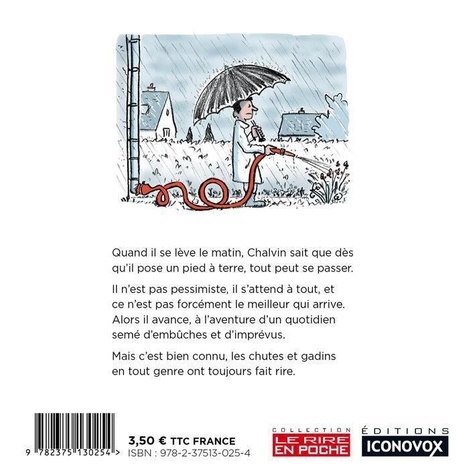 Quand il se lève le matin, Chalvin sait que dès qu'il pose un pied à terre, tout peut se passer. Il n'est pas pessimiste, il s'attend à tout, et ce n'est pas forcément le meilleur qui arrive. Alors il avance, à l'aventure d'un quotidien semé d'embûches et d'imprévus. Mais c'est bien connu, les chutes et gadins en tout genre ont toujours fait rire.