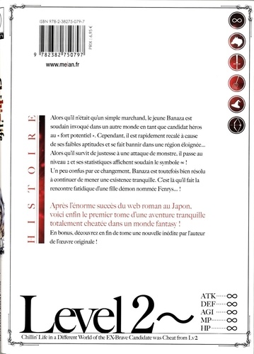 La vie paisible d'un ex-candidat héros recalé mais devenu surpuissant ! Alors qu'il n'était qu'un simple marchand, le jeune Banaza est soudain invoqué dans un autre monde en tant que candidat héros au " fort potentiel ". Cependant, il est rapidement recalé à cause de ses faibles aptitudes et se fait bannir dans une région éloignée... Alors qu'il survit de justesse à une attaque de monstre, il passe au niveau 2 et ses statistiques affichent soudain le symbole ? ! Un peu confus par ce changement, Banaza est toutefois bien résolu à continuer de mener une existence tranquille. C'est là qu'il fait la rencontre fatidique d'une fille démon nommée Fenrys...