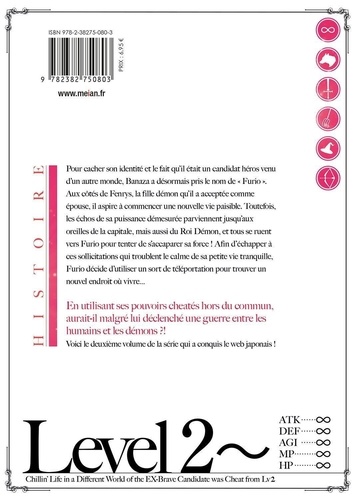 Voici le deuxième volume de la série qui a conquis le web japonais ! Pour cacher son identité et le fait qu'il était un candidat héros venu d'un autre monde, Banaza a désormais pris le nom de " Furio ". Aux côtés de Fenrys, la fille démon qu'il a acceptée comme épouse, il aspire à commencer une nouvelle vie paisible. Toutefois, les échos de sa puissance démesurée parviennent jusqu'aux oreilles de la capitale, mais aussi du Roi Démon, et tous se ruent vers Furio pour tenter de s'accaparer sa force ! Afin d'échapper à ces sollicitations qui troublent le calme de sa petite vie tranquille, Furio décide d'utiliser un sort de téléportation pour trouver un nouvel endroit où vivre... En utilisant ses pouvoirs cheatés hors du commun, aurait-il malgré lui déclenché une guerre entre les humains et les démons ? !