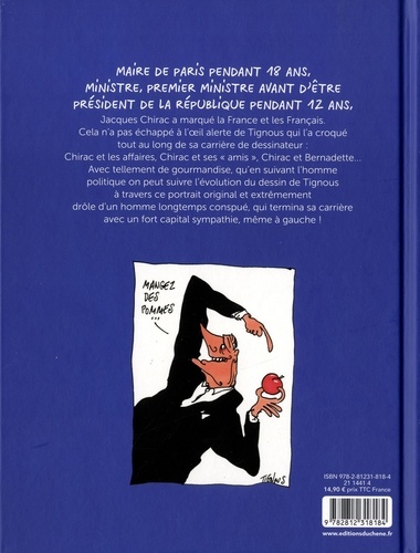 Maire de Paris pendant 18 ans, ministre, premier ministre avant d'être président de la République pendant 12 ans, Jacques Chirac a marqué la France et les Français. Cela n'a pas échappé à l'oeil alerte de Tignous qui l'a croqué tout au long de sa carrière de dessinateur : Chirac et les affaires, Chirac et ses " amis " , Chirac et Bernadette... Avec tellement de gourmandise, qu'en suivant l'homme politique on peut suivre l'évolution du dessin de Tignous à travers ce portrait original et extrêmement drôle d'un homme longtemps conspué, qui termina sa carrière avec un fort capital sympathie, même à gauche !