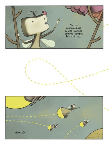 La luciole Chispa en a assez de s'illuminer toujours... en vert ! Et s'il était possible que les lucioles puissent briller en rouge, en orange... de toutes les couleurs ? Peut-être que quelqu'un pourrait lui montrer comment faire...