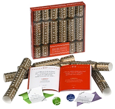 Un coffret avec 6 très jolis crackers avec dans chacun : une couronne en papier de soie colorée, un feuillet plié en 4 avec une Bonne résolution, un badge avec un message humoristique, et un livre de 48 pages : Pour ou contre : lanceur de discussion sur des thématiques rigolotes pour des soirées animées et dans une ambiance détendue.
