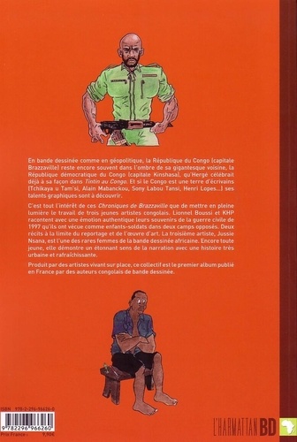 L'intéret de ces Chroniques de Brazzaville est de mettre en pleine lumi7re le travail de trois jeunes artistes congolais. Lionnel Boussi et KHP racontent avec émotion leurs souvenirs de la guerre civile de 1997 qu'ils ont vécue comme enfants-soldats. La troisième artiste, Jussie Nsana, démontre un étonnant sens de la narration avec une histoire très urbaine et rafraîchissante. (Illustrations en couleur). Venez découvrir le site de l'Harmattan BD bd. harmattan. fr !
