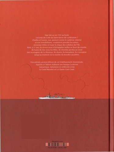 Que fait-on en 1942 au lycée Leconte-de-Lisle de Saint-Denis de La Réunion ? Charles et Lucien, eux, pestent contre le système colonial et son immobilisme, voudraient prendre les armes, renverser Hitler et toute la clique des collabos de l'île. Mais, à 17 ans, ils rêvent aussi d'échappées belles au bout du monde, de bains de mer avec les filles, de chemins perdus au coeur des montagnes de La Réunion. Ils rêvent, ils bavardent, ils s'ennuient, jusqu'au moment où la marche du monde s'accélère.