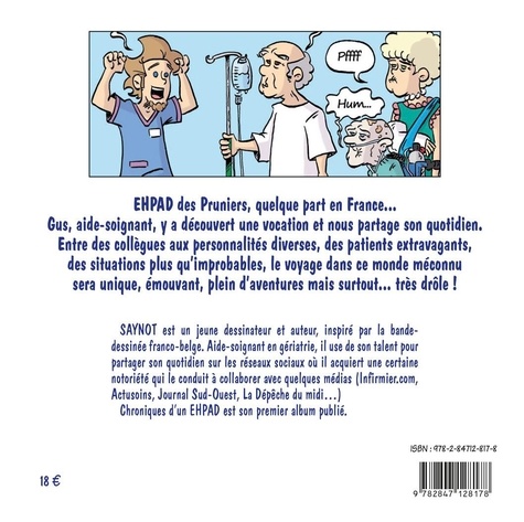 EHPAD des Pruniers, quelque part en France... Gus, aide-soignant, y a découvert une vocation et nous partage son quotidien. Entre des collègues aux personnalités diverses, des patients extravagants, des situations plus qu'improbables, le voyage dans ce monde méconnu sera unique, émouvant, plein d'aventures mais surtout... très drôle !