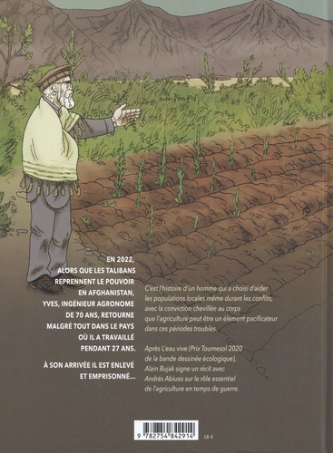 En 2022, alors que les talibans reprennent le pouvoir en Afghanistan, Yves, ingénieur agronome de 70 ans, retourne malgré tout dans le pays où il a travaillé pendant 27 ans. A son arrivée il est enlevé et emprisonné... C'est l'histoire d'un homme qui a choisi d'aider les populations locales même durant les conflits, avec la conviction chevillée au corps que l'agriculture peut être un élément pacificateur dans ces périodes troubles. Après L'eau vive (Prix Tournesol 2020 de la bande dessinée écologique), Alain Bujak signe un récit avec Andrés Abiuso sur le rôle essentiel de l'agriculture en temps de guerre.