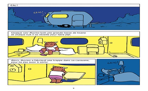 Comment ils se sont rencontrés ? C'est simple. En pleine nuit, comme d'habitude, Morino est allé faire pipi par la trappe spéciale de sa caravane. Mais cette fois, le pipi de tisane est tombé sur un petit squelette enterré dessous et l'a réveillé. Il s'appelle Claude, il est d'une agréable couleur verte, il est curieux de tous les détails de la vie sur terre qu'il a oubliés, et il se prend d'affection pour Morino qui finit par le trouver un peu collant. Pourtant, plus il cherche à s'en débarrasser, plus Claude lui devient indispensable. A partir de 7 ans.