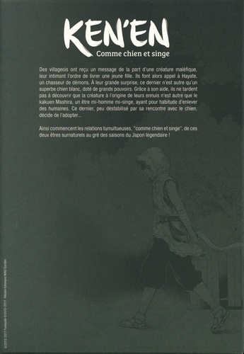 Des villageois ont reçu un message de la part d'une créature maléfique, leur intimant l'ordre de livrer une jeune fille. Ils font alors appel à Hayate, un chasseur de démons. A leur grande surprise, ce dernier n'est autre qu'un superbe chien blanc, doté de grands pouvoirs. Grâce à son aide, ils ne tardent pas à découvrir que la créature à l'origine de leurs ennuis n'est autre que le kakuen Mashira, un être mi-homme mi-singe, ayant pour habitude d'enlever des humaines. Ce dernier, peu déstabilisé par sa rencontre avec le chien, décide de l'adopter... Ainsi commencent les relations tumultueuses, "comme chien et singe", de ces deux êtres surnaturels au gré des saisons du Japon légendaire !