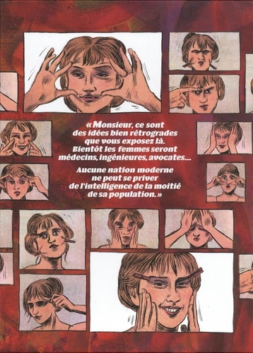 "Monsieur, ce sont des idées bien rétrogrades que vous exposez là. Bientôt les femmes seront médecins, ingénieures, avocates... Aucune nation moderne ne peut se priver de l'intelligence de la moitié de sa population."