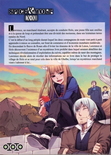 Lawrence, un marchand itinérant, accepte de conduire Holo, une jeune fille aux oreilles et à la queue de loup et prétendant être une divinité des moissons, dans ses lointaines terres natales du Nord. C'est le début d'un long périple durant lequel les deux compagnons de route vont petit à petit apprendre à mieux se connatîre, sur fond de commerce et d'économie monétaire médiévale. En descendant le fleuve de Roam afin d'éviter les émeutes de la ville de Lenos, Lawrence et Hob découvrent l'existence d'un mystérieux livre prohibé dans lequel seraient détaillées des techniques révolutionnaires d'exploitation du cuivre, capables même de raser des montagnes. Lawrence décide alors de récolter des informations sur ce livre dans le but de protéger le village de Holo et se rend pour cela dans la ville de Ghelbe, lorsqu'un mystérieux marchand vient s'adresser à lui...