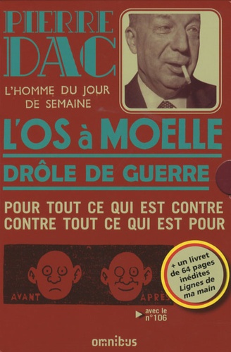 Avec ce coffret réunissant l'anthologie de L'Os à moelle et Drôle de guerre, deux succès qui ont consacré Pierre Dac auprès des jeunes générations, c'est dix ans d'histoire qui défilent sous la plume drolatique du Roi des loufoques et de ses complices : l'avant-guerre, avec L'Os à moelle (1938-1940), l'Occupation et l'après-guerre avec Drôle de guerre (1943-1947). En cadeau, un livret de 64 pages, Lignes de ma main, réunit des pages manuscrites du Roi des loufoques.