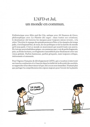 Une bande dessinée d'actualité criante, destinée aux 12-25 ans et, plus largement, au public intéressé par le concept de partage et la conservation des ressources naturelles. Une association vertueuse entre Jul, un dessinateur expert sur l'actualité, et un organisme d'état, l'AFD expert sur le développement durable.