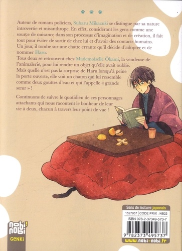 Auteur de romans policiers, Subaru Mikazuki se distingue par sa nature introvertie et misanthrope. En effet, considérant les gens comme une source de nuisance dans son processus d'imagination et de création, il fait tout pour éviter de sortir de chez lui et d'avoir des contacts humains. Un jour, il tombe sur une chatte errante qu'il décide d'adopter et de nommer Haru. Tous deux se retrouvent chez Mademoiselle Ôkami, la vendeuse de l'animalerie, pour lui rendre un objet qu'elle avait oublié. Mais quelle n'est pas la surprise de Haru lorsqu'à peine la porte ouverte, elle voit un chaton qui lui ressemble comme deux gouttes d'eau et qui l'appelle "grande soeur" ! Continuons de suivre le quotidien de ces personnages attachants qui nous racontent le bonheur de leur vie à deux, chacun à travers leur point de vue !