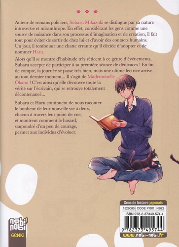Auteur de romans policiers, Subaru Mikazuki se distingue par sa nature introvertie et misanthrope. En effet, considérant les gens comme une source de nuisance dans son processus d'imagination et de création, il fait tout pour éviter de sortir de chez lui et d'avoir des contacts humains. Un jour, il tombe sur une chatte errante qu'il décide d'adopter et de nommer Haru. Alors qu'il se montre d'habitude très réticent à ce genre d'événements, Subaru accepte de participer à sa première séance de dédicaces ! En fin de compte, la journée se passe très bien, mais une dernière lectrice arrive au tout dernier moment... Il s'agit de Mademoiselle Ôkami ! C'est ainsi qu'elle découvre toute la vérité sur l'écrivain, qui se retrouve totalement décontenancé... Subaru et Haru continuent de nous raconter le bonheur de leur nouvelle vie à deux, chacun à travers leur point de vue, et montrent comment le hasard, saupoudré d'un peu de courage, permet aux individus d'évoluer.
